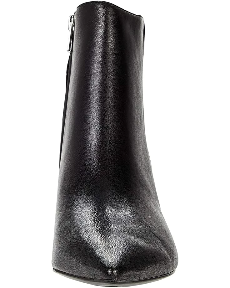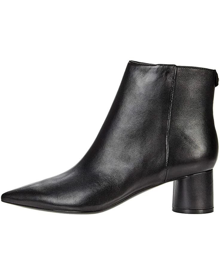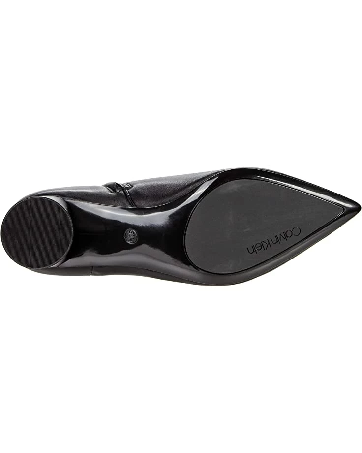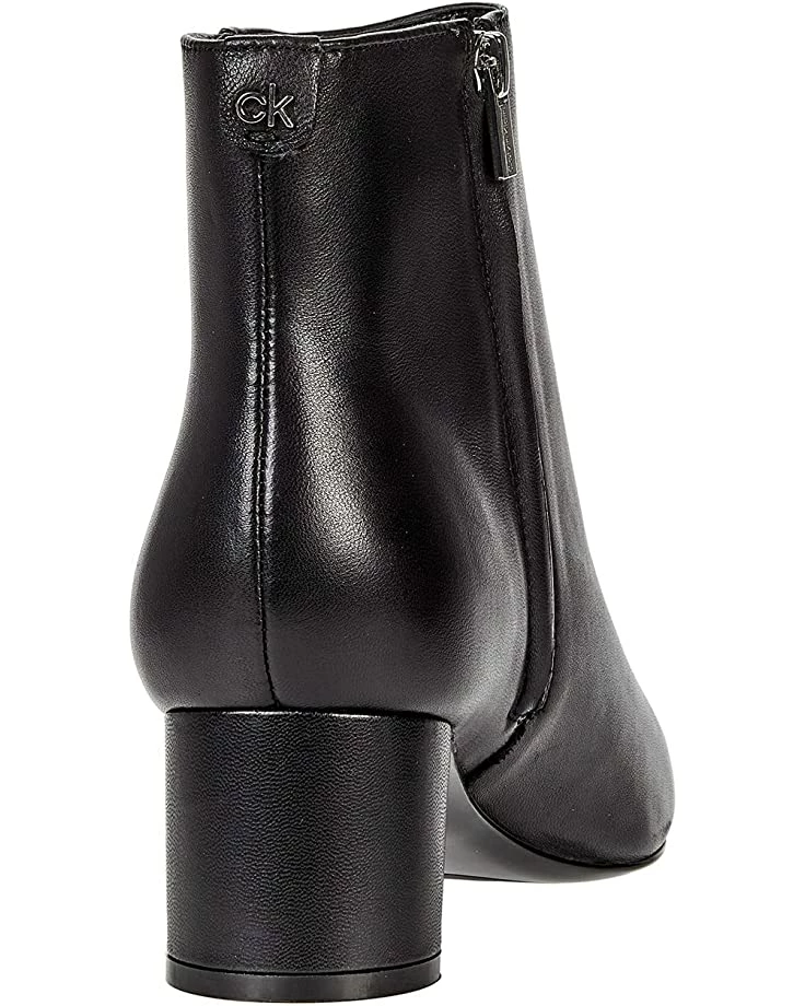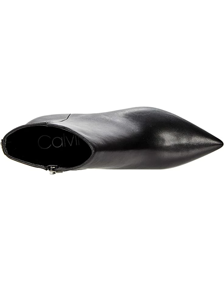 - With an elegant pointed toe and premium leather upper, the Calvin Klein® Genoa is a stylish heeled boot, perfect for pairing with your favorite denim or formal wear.