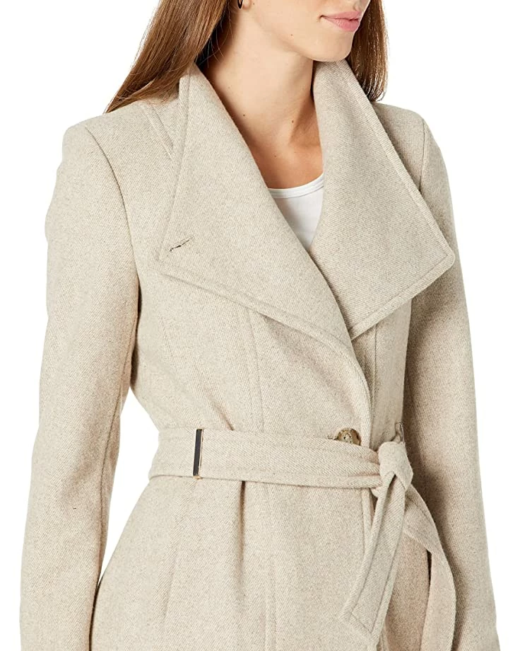 - When you need coverage in a sleek silhouette, grab the Calvin Klein® Asymmetrical Belted Wrap Coat before stepping out the door on chilly days.