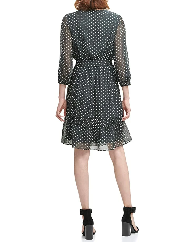 Calvin Klein Dresses Embroidered Dot Long Sleeve Top with Ruffle Hem