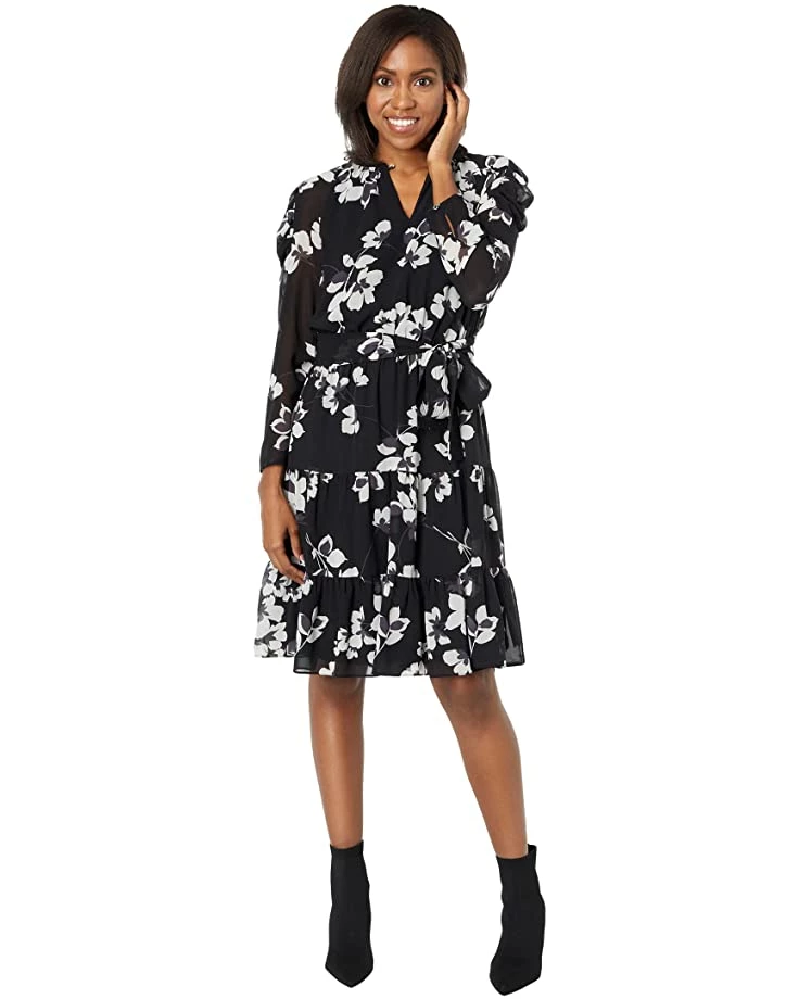 Calvin Klein Dresses Long Sleeve Ruffle Dress with Tie