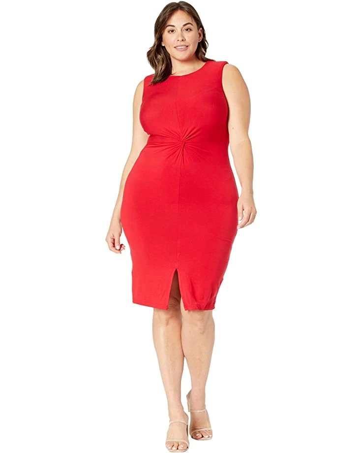- Fabric twist in front of dress, above waistline for a curvy accent.