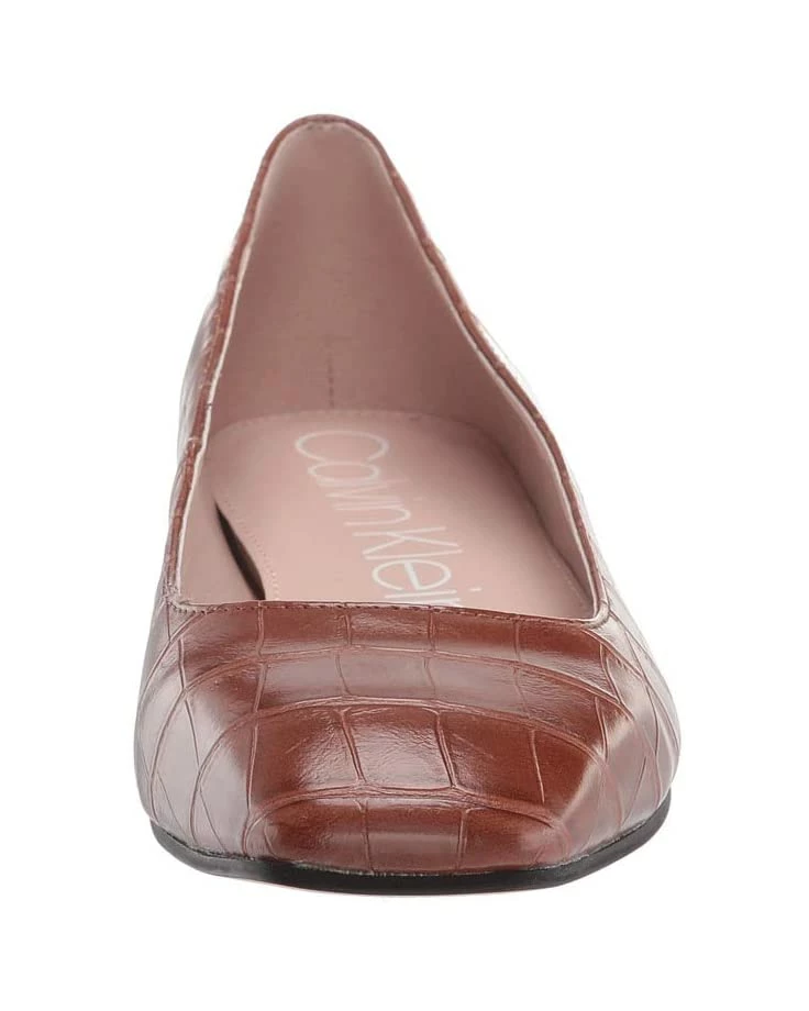 - The Calvin Klein® Heidy flat is the perfect finishing touch for your polished ensemble with a square toe, mini metallic heel, and easy slip-on styling.