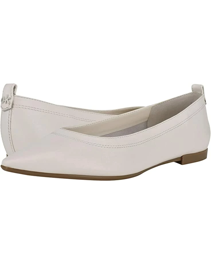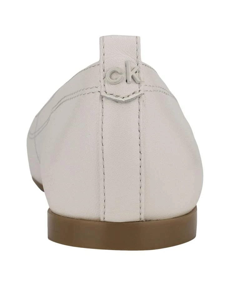 - Walk your way from the office to drinks at happy hour in these Calvin Klein® Raya flats. These slip-on shoes are crafted from a soft leather upper, feature a CK branded pull tab at the back and are completed with a flexible pointed toe giving them casual versatility when styling.