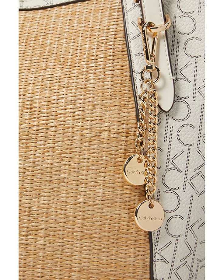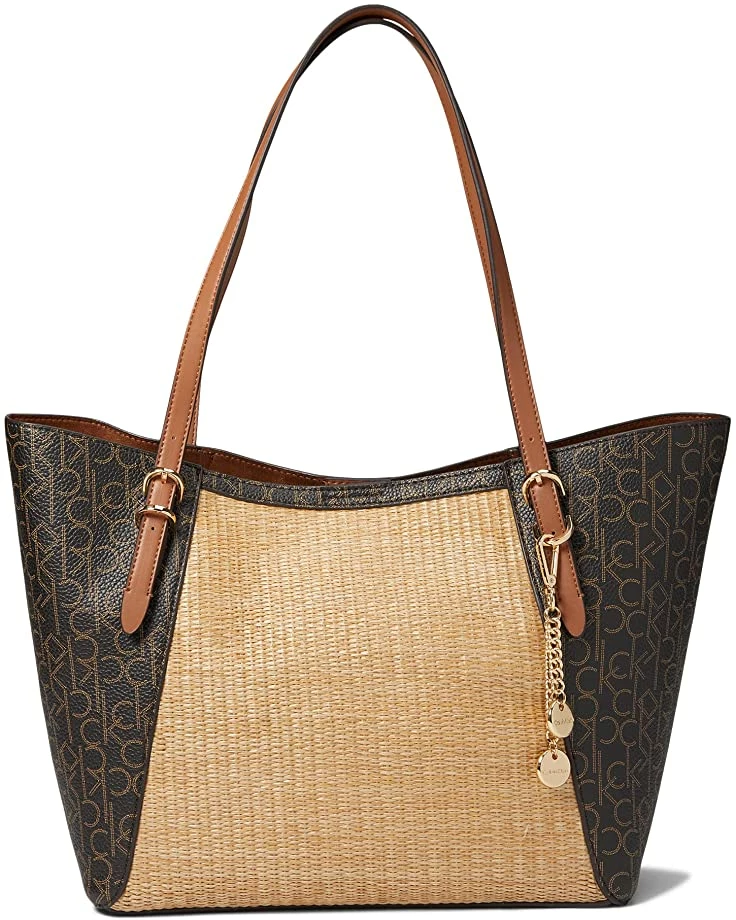 - Style your casual look carrying the Calvin Kleinยฎ Denver Novelty Tote Handbag. This well-designed bag comes with charms that include signature brand detailing on the front.