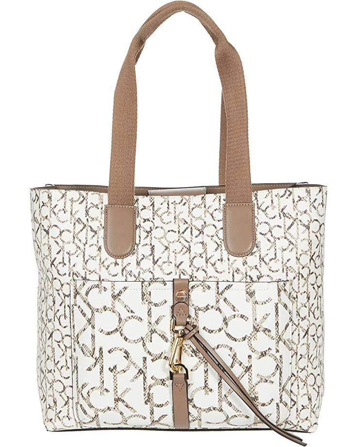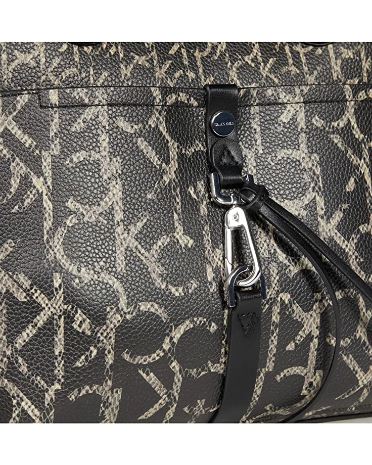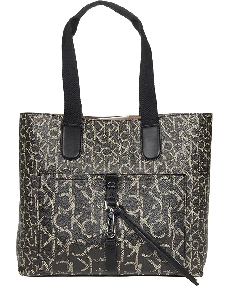 - Carry everything you need in the durable construction of the Calvin Klein® Ensley Twin Print Python Tote featuring a classic tote style bag with snap-button closure and front slip pocket boasting buckle detailing and all over branding print. Available in two color options.