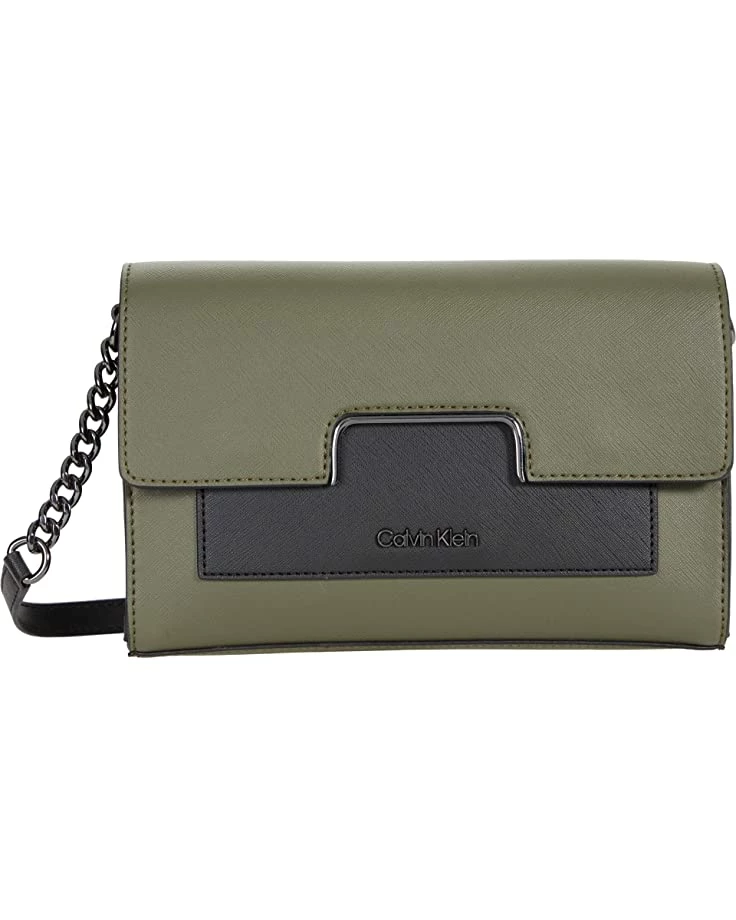 - Carry all your essentials in style with this gorgeous Calvin Klein® Finley Saffiano Crossbody. Constructed from man-made materials, this bag features an adjustable buckle chain link design crossbody strap, exterior back slip compartment, center front magnetic snap closure, interior zip pocket, and a interior slip pocket.