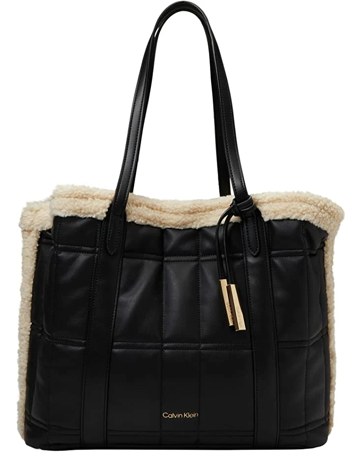 - The Calvin Klein® Hagan Quilted Grid/Sherpa Novelty Tote features a chic quilted exterior with a fun sherpa detail.