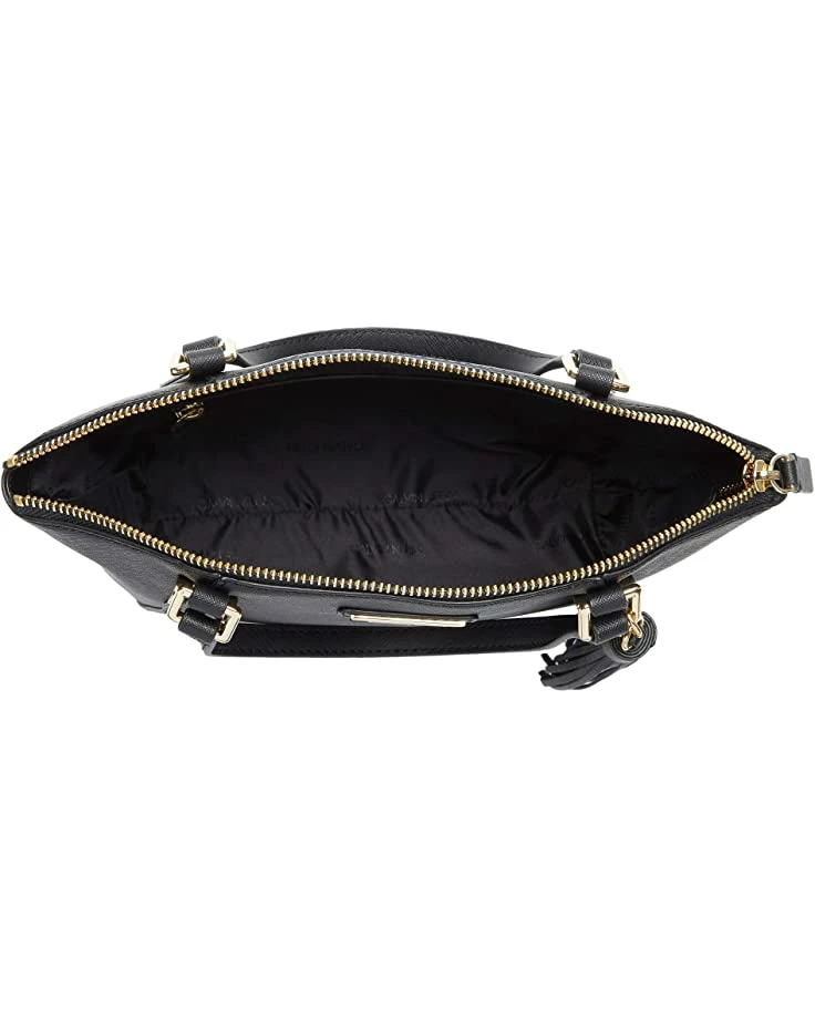 - Banded shoulder straps with attached key charm tassel.