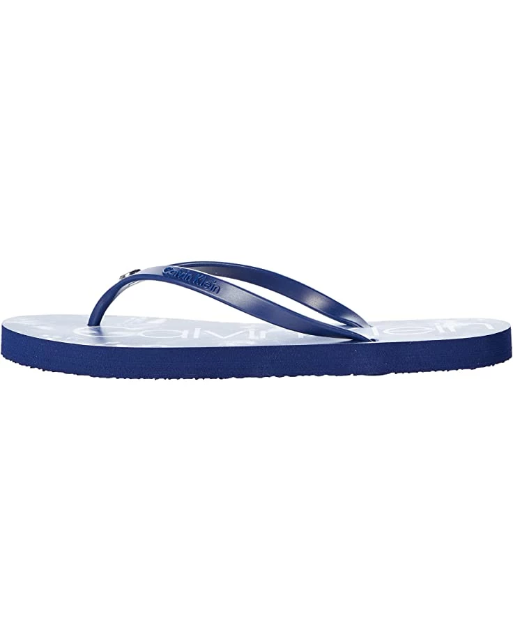 - Flip flop style made with soft synthetic material, a thong strap, a padded footbed, and signature logo detailing.