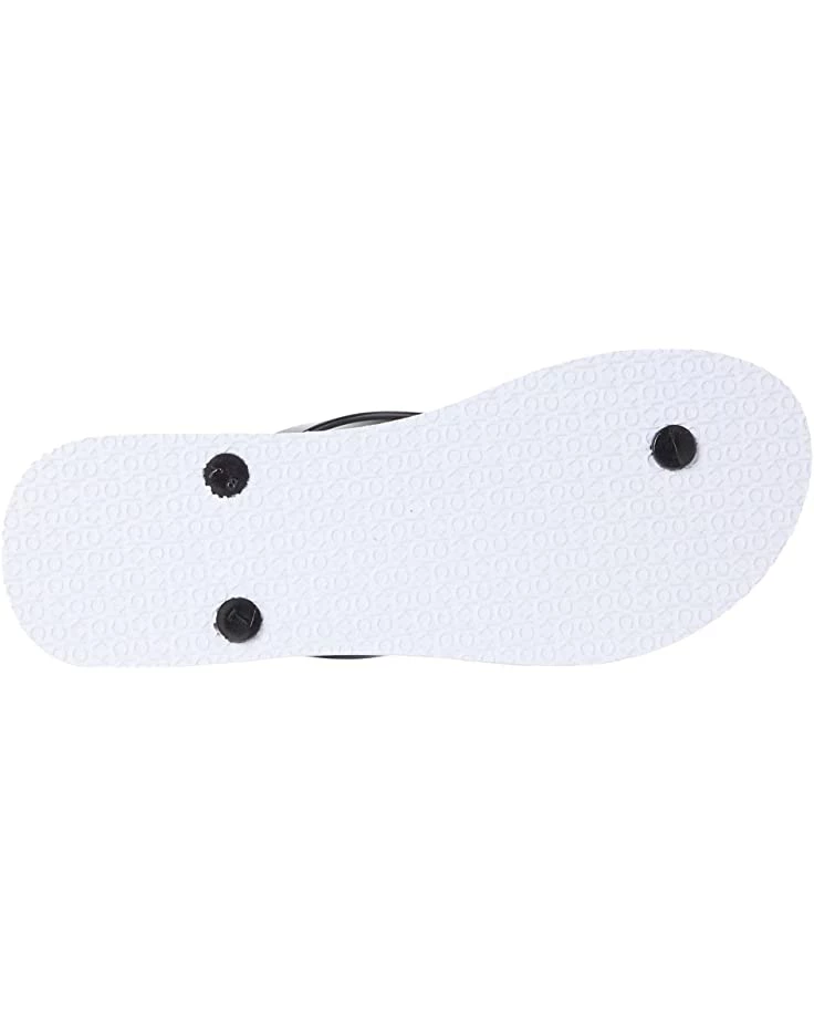 - Features a classic toe post with metal brand emblem detail and engraved brand name.