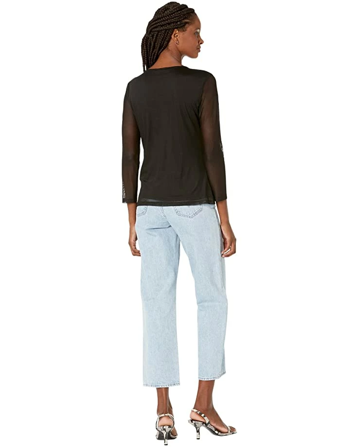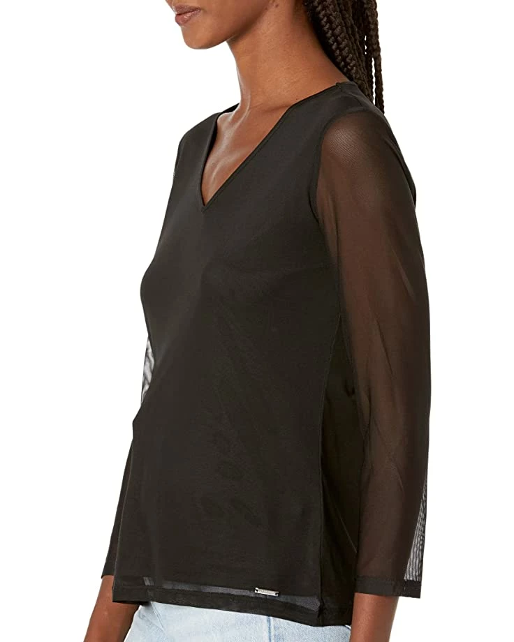 - Be ready to flaunt effortlessly while being extremely comfortable wearing Calvin Klein® 3/4 Sleeve V-Neck Mesh Top.