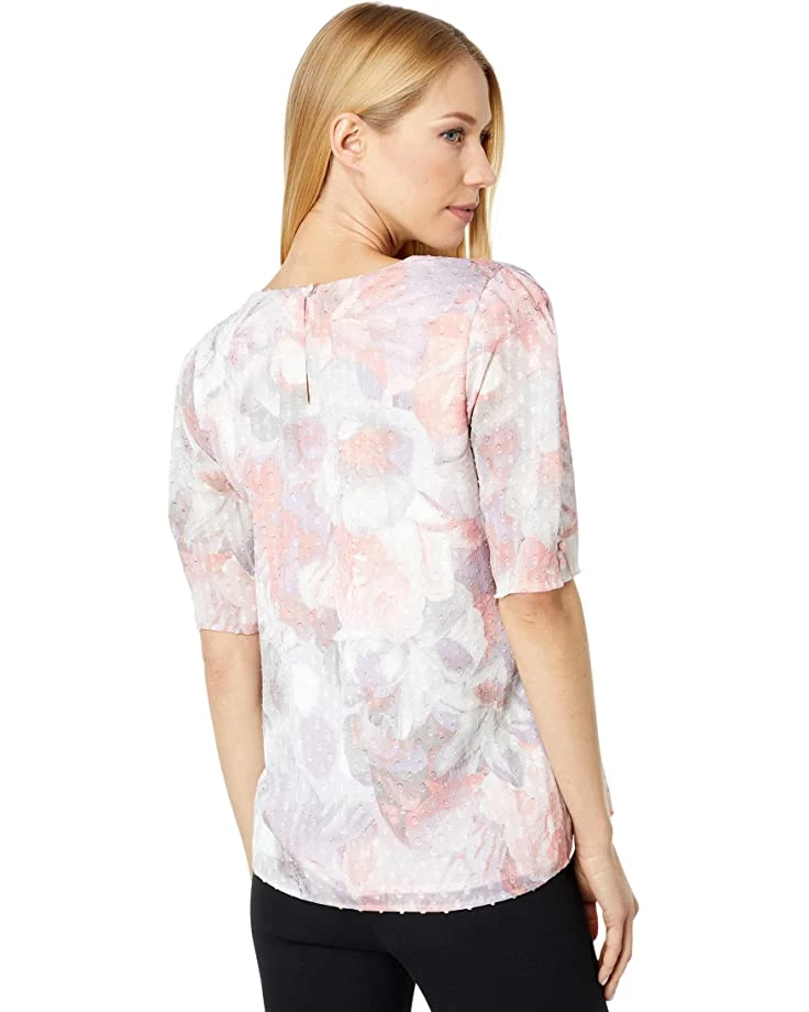 - Crafted in a chic clipdot fabric with allover subdued floral print, the Calvin Kleinยฎ Floral Clipdot Short Sleeve Blouse is enough to bring a romantic charm to your everyday style.