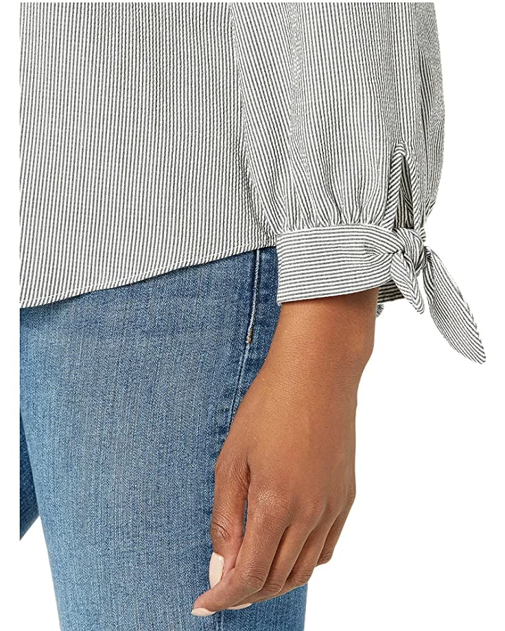 - Long blouson sleeves with notched tie cuff detailing.