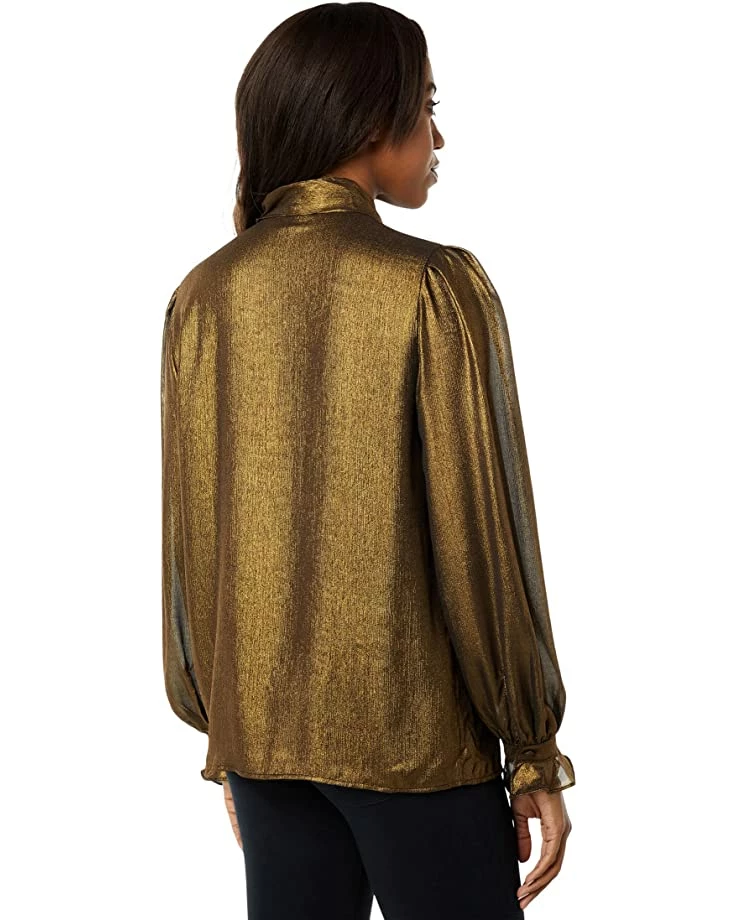- Elevate your party outfit wearing Calvin Klein® Novelty Long Sleeve Tie Neck Blouse.
