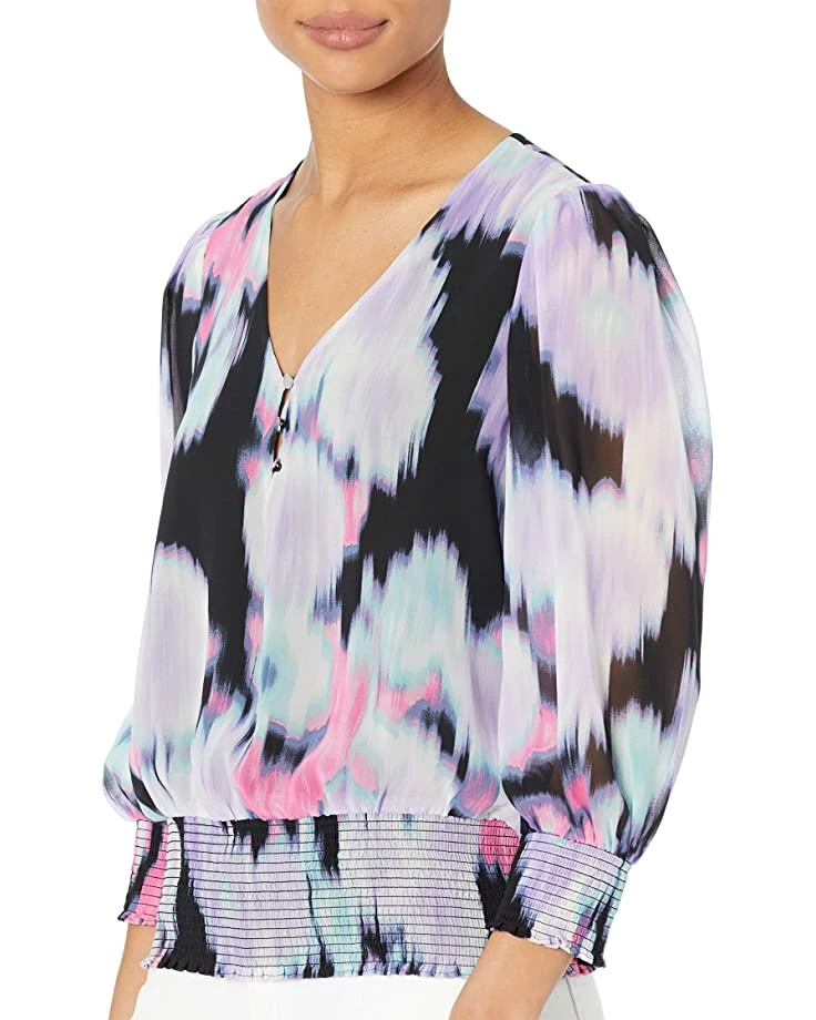 Calvin Klein Shirts & Tops Printed V-Neck Blouse w/ Smocking