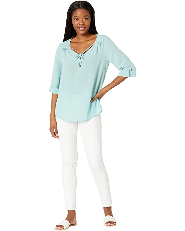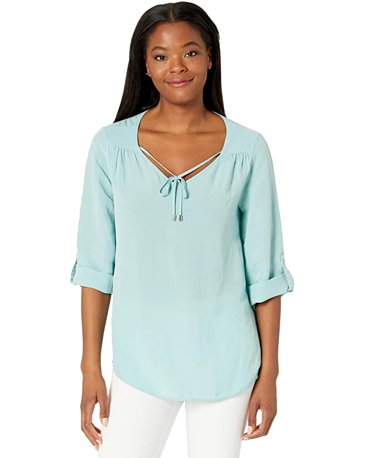 - Featuring an elegant ruched styling and flowy sleeves with button cuffs, the Calvin Klein® Ruffle Sleeve Blouse w/ Tie Collar is a lovely blouse for everyday wear.