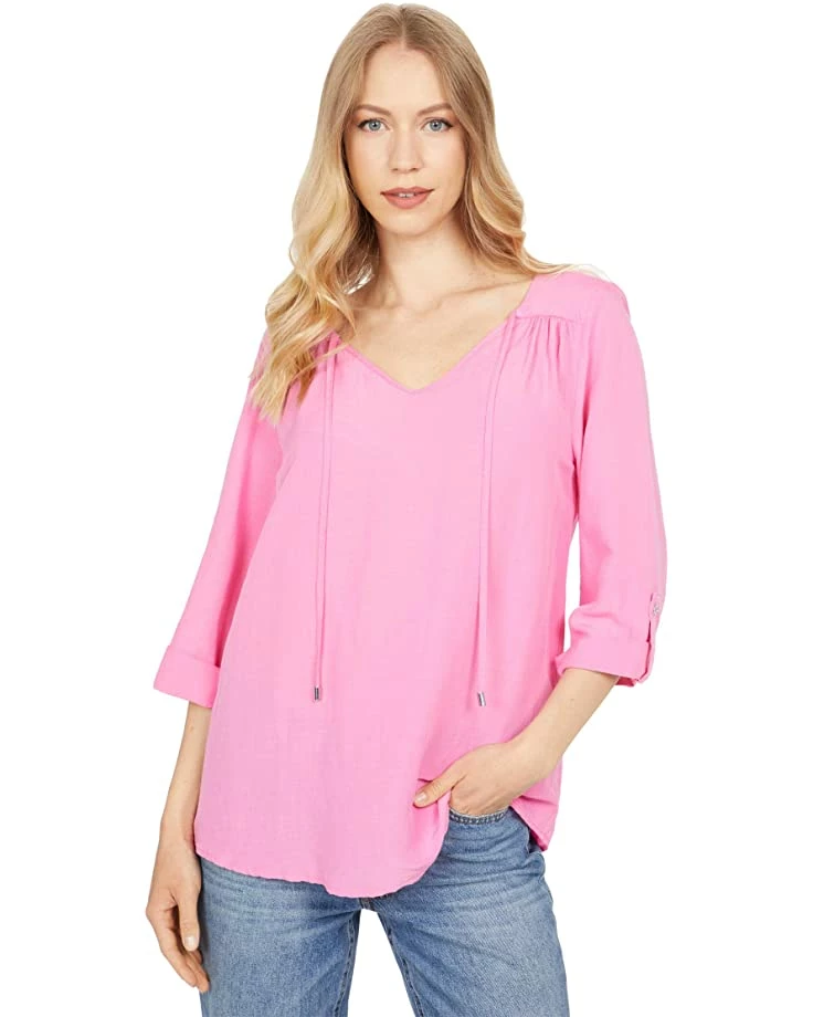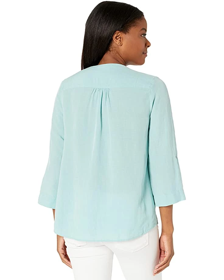 - Three-quarter length sleeves with button cuffs.