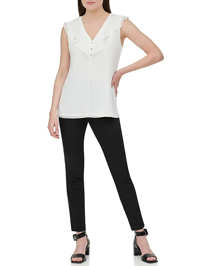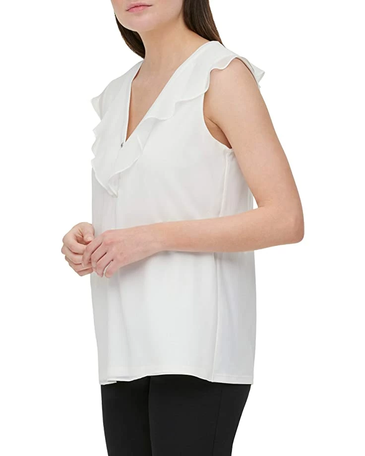 - Brighten up your look with the sleeveless Calvin Klein™ top featuring a relaxed fit and a solid colorway on a chiffon fabrication.