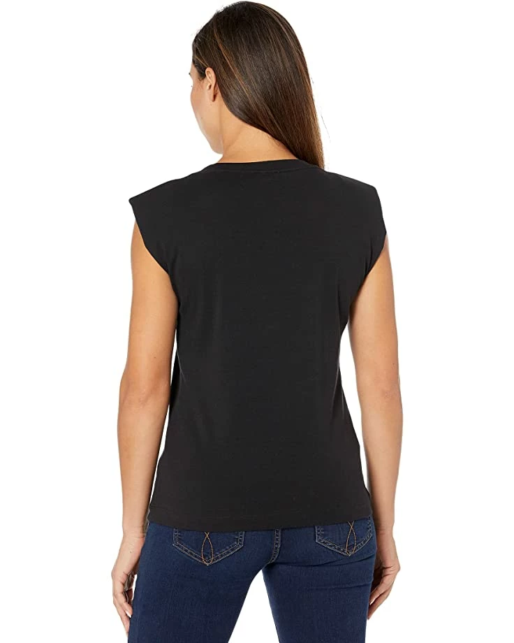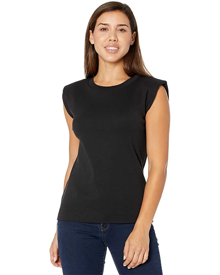 - Cap sleeve crewneck with a straight hemline.
