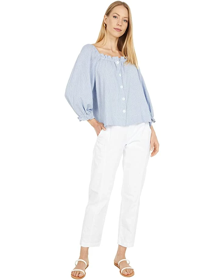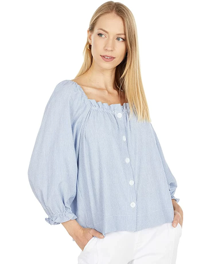- Create a casual, polished look perfect for catching lunch with a friend wearing the Calvin Klein® Square Neck Blouse with Buttons featuring a classic square neck top with long sleeves and elastic cuffs boasting striped pattern and front button closure and straight hemline.