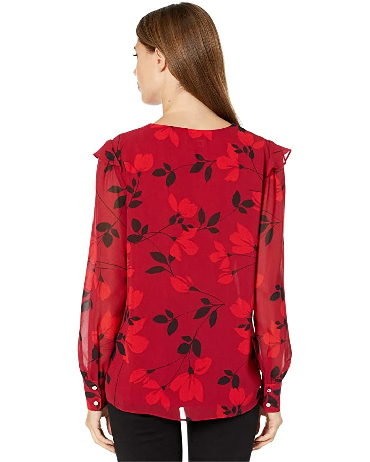- Calvin Klein® V-Neck Blouse with Ruffle Sleeves is sure to add a touch of elegance to your personality.