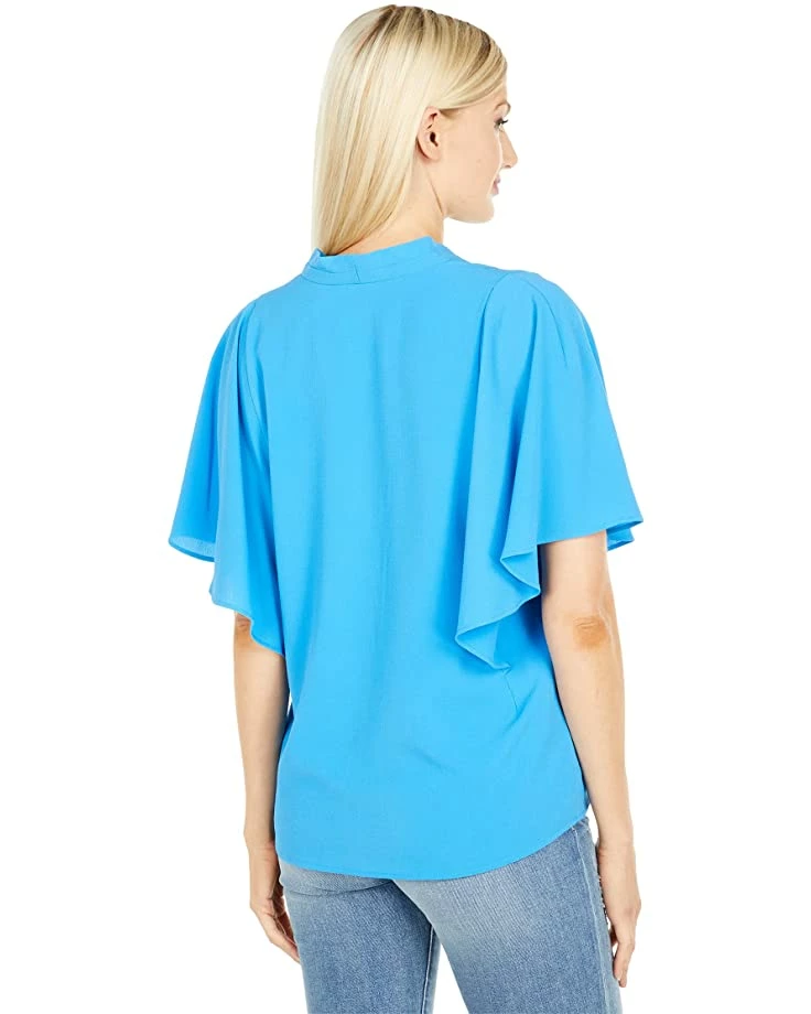 - Short, flutter sleeves.
