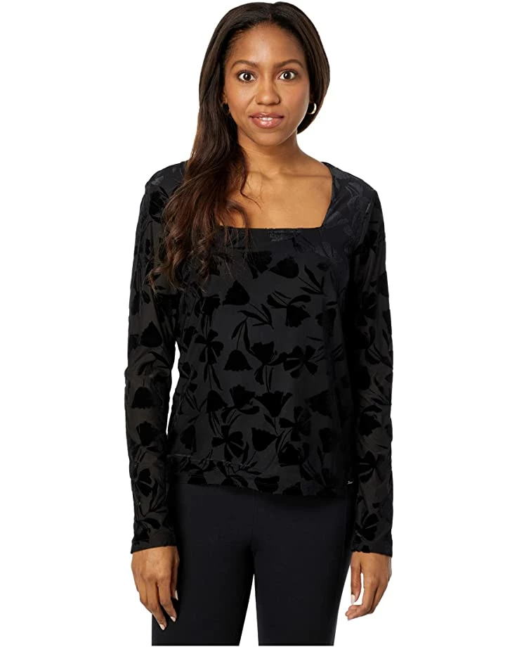 - Look bold and beautiful wearing the Calvin Klein® Velvet Burnout 3/4 Sleeve Top.