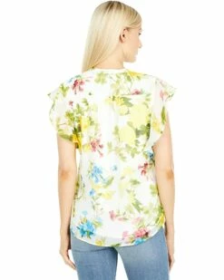 Calvin Klein Shirts & Tops Printed V-Neck Blouse with Ruffle Sleeves
